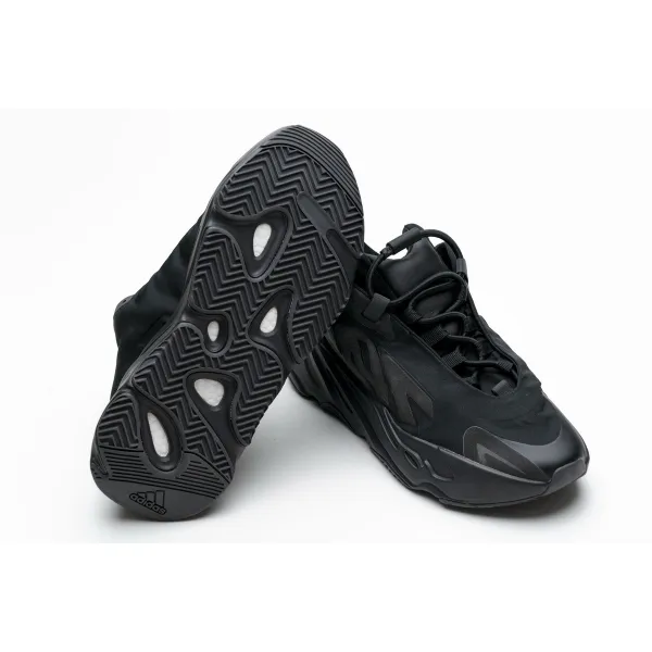 This Yeezy Boost 700 MNVN is comprised of a triple black nylon upper paired with reflective detailing. A solid black sole with Boost cushioning completes the design.